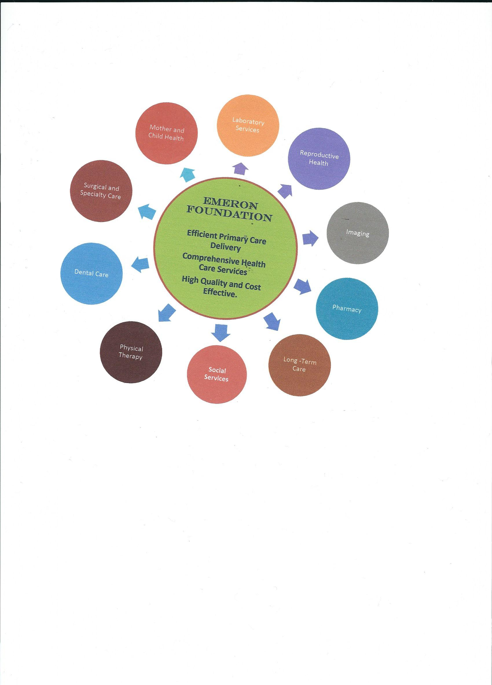 Emeron Foundation's work is service to humanity. Service to humanity comes in various forms and shapes. It could include providing clinical medical services, helping the disabled, donations to the needy, health education and community services. The United Nations has described health system as a structure that includes all actors, organizations, institutions and resources whose primary purpose is to improve health.